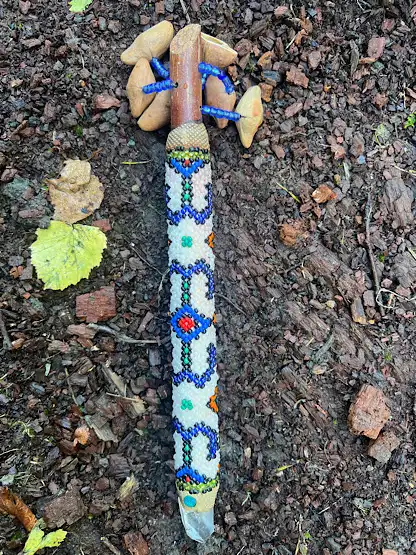 Icaro Glass Beaded & Ayahusca Wood Rattle With Lemurian Quartz