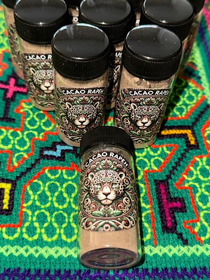 Katukina Cacao Rapé is a carefully prepared blend made by the Katukina people, combining the natural qualities of cacao with the grounding effects of traditional Rapé.