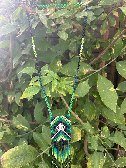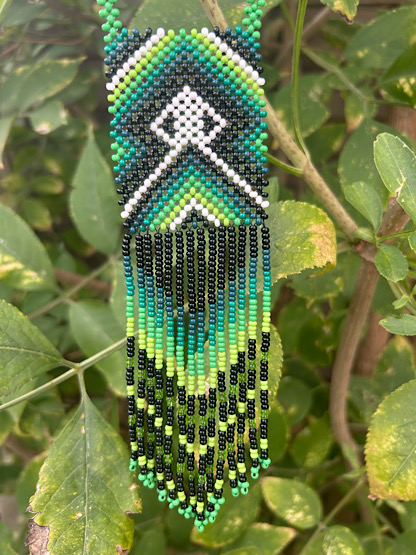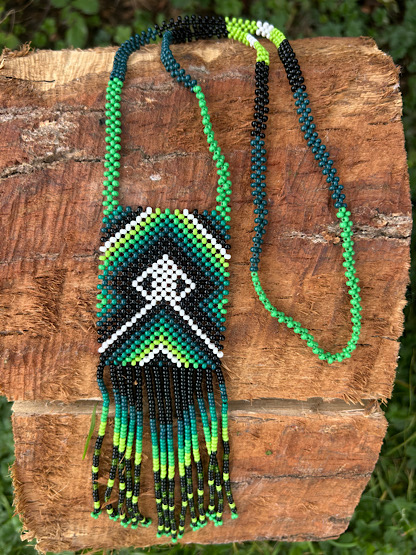 What makes this necklace truly special is their connection to ceremony, spirit, and storytelling. The beadwork becomes a visual language—translating sacred visions into wearable art. Many designs include representations of: