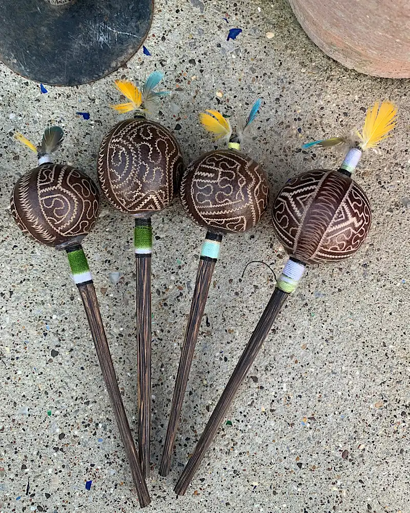 Each handmade item, including these rattles, carries intention, song, and spiritual protection.