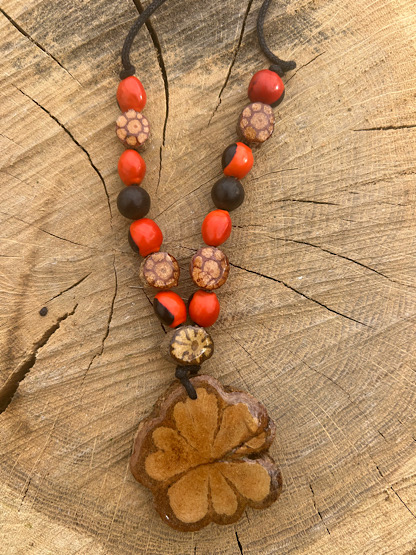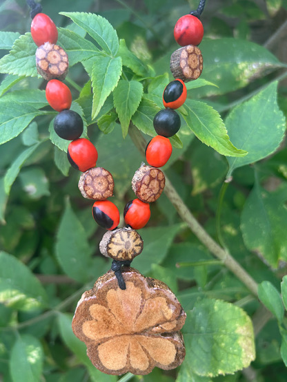 Each necklace is made with sacred intention. It combines a slice of the Ayahuasca vine (Banisteriopsis caapi) with hand-selected natural seeds sourced directly from the rainforest. For the Shipibo, these elements carry energy, stories, and the vibrational language of the forest.